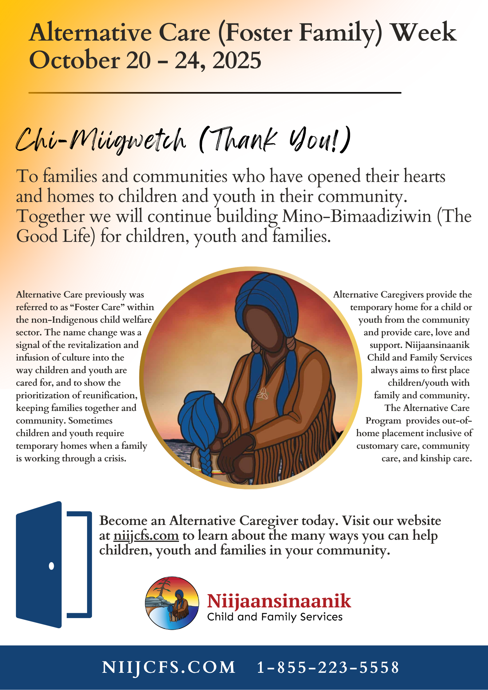 Please note the views expressed in the third party content and links belong to the content creators and not Niijaansinaanik Child and Family Services, its affiliates, or employees.